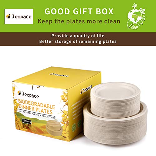 【100% Sugarcane Fiber Plates】Jeopace Plate is made of 100% biodegradable sugarcane fiber.A perfect alternative to traditional paper or plastic,the disposable plate offers the same sturdy function and easy cleanup.Yet it’s completely tree- free and plastic-free.
