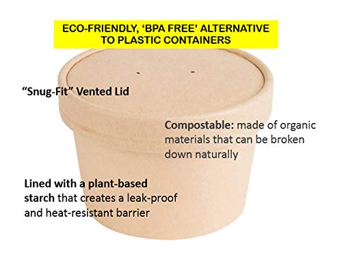 STURDY KRAFT BROWN CARDBOARD DELI/SOUP BAR CONTAINERS with ‘SNUG-FIT’, VENTED LIDS get the job done: convenient one cup size is great for lunches on-the-go, as a homemade baby food conainer, take out food and transporting hot & cold food for every type of events.