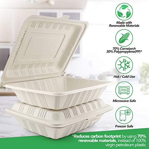 ✅ THINK ABOUT THE NEXT GENERATION BY GOING GREEN – Billions of tons of plastic have been made over the past decades, and much of it is becoming trash and litter. And plastic takes more than 400 years to degrade, so most of it still exists in some form – By committing to HeloGreen food containers made from cornstarch, a renewable resource, and small percentage of PP#5 used for durability and strength, and its proprietary additive for degradation helps reduce your carbon footprint!