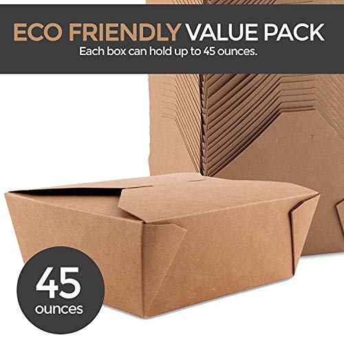 Stock Your Home 45 Ounce Kraft Brown Takeout Boxes are the Eco-Friendly alternative to foam and plastic takeout trays, Comprised of natural kraft paper stock the use of a chlorine-free manufacturing process and integrated soy blend eco-wax, this bag supports the green movement without sacrificing function!Our takeout boxes are ideal for keeping your food fresh, in addition to, refrigerating and microwaving takeout or leftover food. They’re also an eco-friendly alternative to lunch boxes.Our large boxes were specially designed to hold greasy foods with no need liquids seeping through. Your meals will be securely packaged in these shuttle size to-go containers. They’re also microwaveable. Whether you’re hosting a party or running a food servicing business, these containers are ideal for serving both hot and cold dishes.Our pack comprises a total of 50 boxes. Each and every box can hold up to 45 ounces. Product Dimensions: Length 5 3/4 Inches, Width 4 1/2 Inches, Height 2 1/2 Inches, Bottom Length 5 3/4 Inches, Bottom Width 4 1/2 Inches.