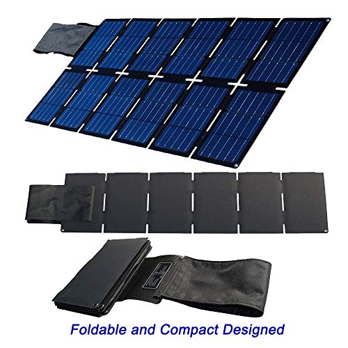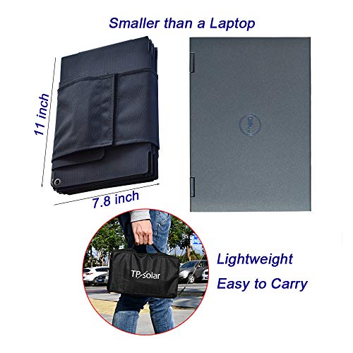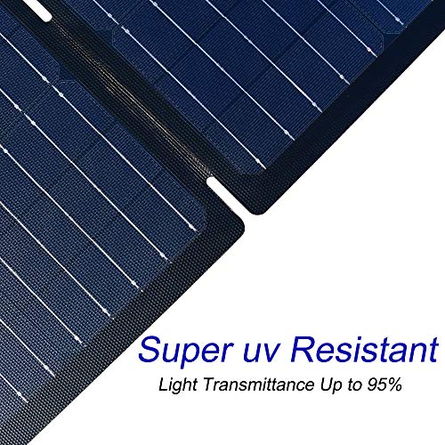 Foldable and Lightweight Easy to Carry: This solar panel weighs only 5.1lb (2.3kg), fold size 11*7.8*2.9 inch, making it easier to mount, transport, hang.