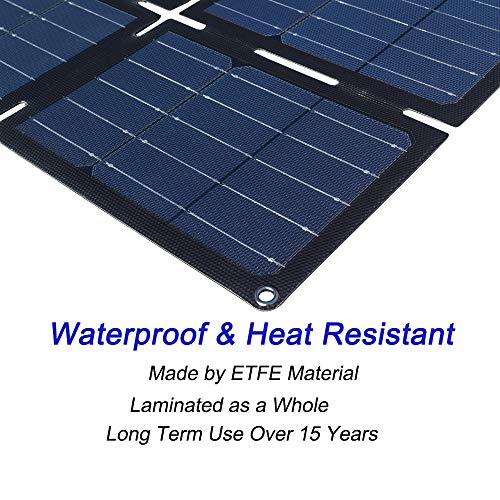 Waterproof and Durable: The solar panel is fully Laminated, made by advanced laminated technology and long lasting ETFE material, made for long term use over 15 years. The solar panel is waterproof to endure all weather conditions, it can be washed by water directly, ideal for outdoor activities such as camping, climbing, hiking, picnic, road trip.
