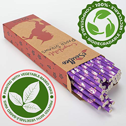 🦄 Tasteless with unique unicorn design printed on the straw the usage of food grade ink. Perfect Size & High Quality: 7.75″ long, 0.25″ diameter.